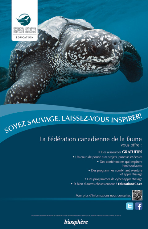 Au nom de la Fédération canadienne de la faune, j’ai le grand plaisir de vous présenter tous mes vœux en cette saison des fêtes et de vous souhaiter une bonne et heureuse année. Éducation FCF dispose des ressources nécessaires pour que vos activités d’enseignement sur la faune et flore soient encore plus amusantes, intéressantes et enthousiasmantes pour les élèves en 2013. Nos programmes pédagogiques innovateurs sont conçus pour inciter les élèves à sortir hors les murs afin de contribuer à la conservation de la faune. Vous pouvez nous demander nos ressources coordonnées chaque fois que vous en avez besoin. Vous trouverez de plus amples renseignements à ce sujet dans notre site Web, mais nous présentons ci-dessous quelques exemples de choses à faire pour vous engager. Étant donné que 2013 est l’année internationale de la coopération dans le domaine de l’eau, vous trouverez que plusieurs de ces programmes peuvent servir de ressources pour prendre part aux festivités.